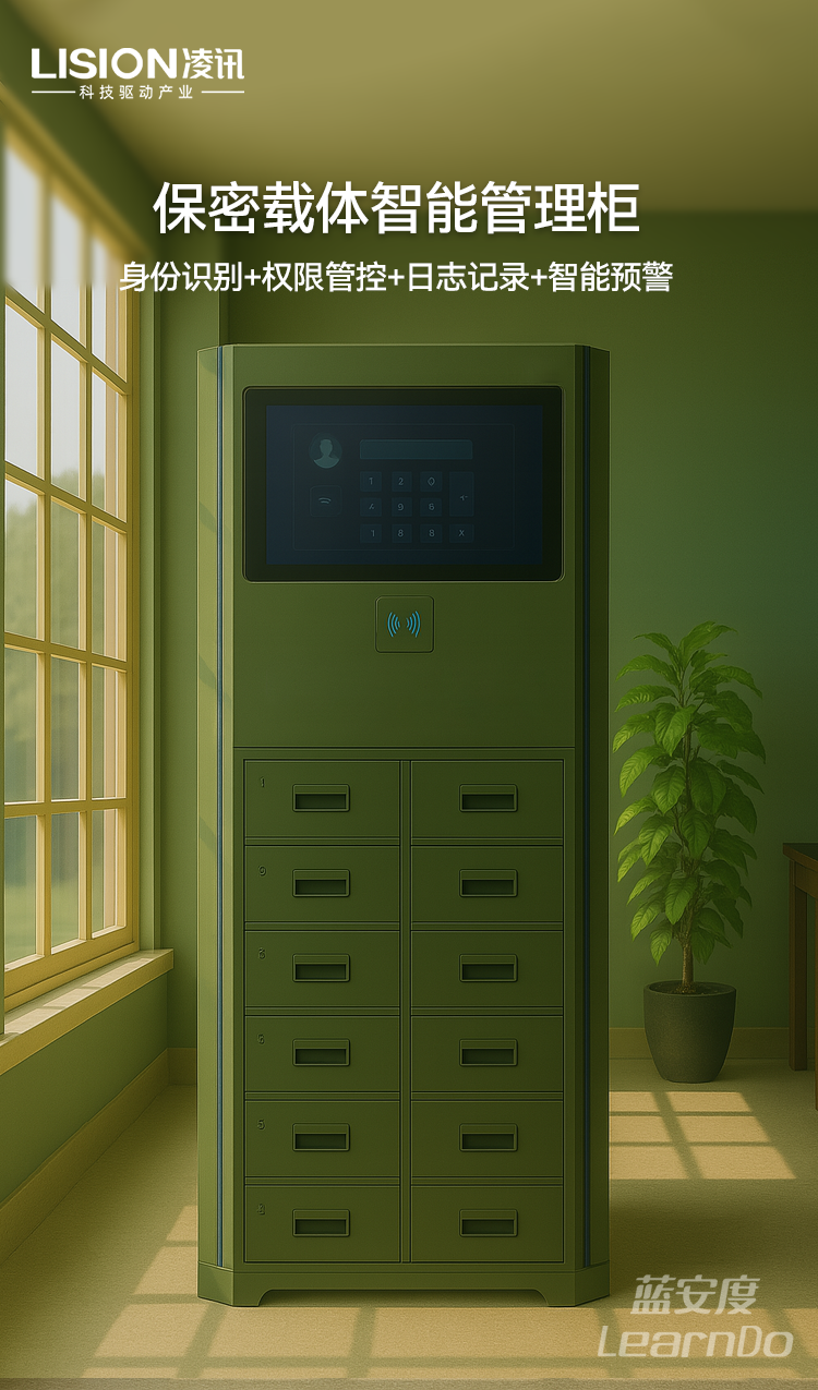凌讯智能保密载体管理柜,面向涉密单位、公检法机关、军工科研、政务数据中心等场所打造,融合身份识别+权限管控+日志记录+智能预警于一体,实现对光盘、硬盘、机密文件、U盘等载体的精细化存储、智能化管控、安全化追溯。