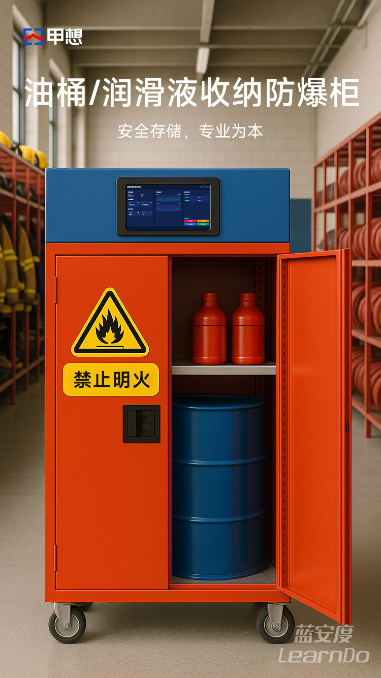 甲想 · 油桶润滑液收纳防爆柜是一款专为消防、应急、后勤及工业场景设计的危险液体集中存储与防爆管理设备,用于规范收纳各类润滑油、燃油、清洗剂等易燃化学品。产品采用厚板钢材+防爆通风结构+多重安全锁控,实现“防泄漏、防腐蚀、防爆炸”的三重安全防护。柜体内部根据油桶及容器尺寸设置分区托架,支持20L~200L不同容量容器存放,配套收集盘可防止液体意外渗漏。同时支持张贴/扫码式标签管理,可选配温湿监控模块、烟感联动装置等功能模块,确保使用过程可控、可视、可追溯。