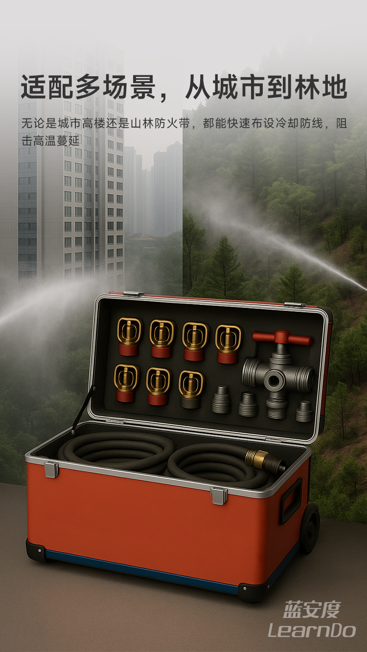 火场边缘、高温封控、水源临时部署……面对复杂环境,降温系统必须快速响应、灵活组装、稳定运行。消防冷却喷淋头组件箱,专为临战部署与高温控险设计,一箱在手,即插即用,构建高效冷却屏障。