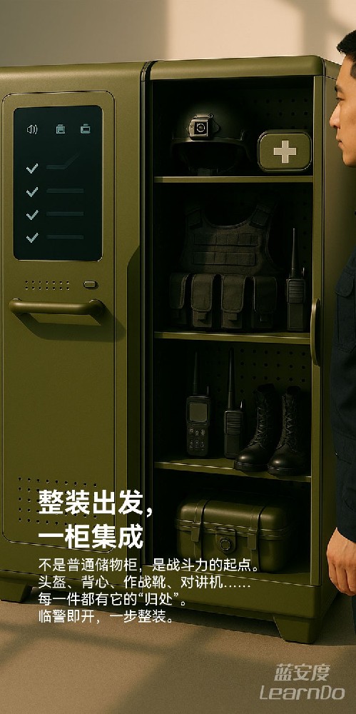 智能战斗装备柜,专为部队、武警、特警等高机动单位打造,集“统一存放 + 快速整装 + 自动盘点 + 安全管控”于一体。