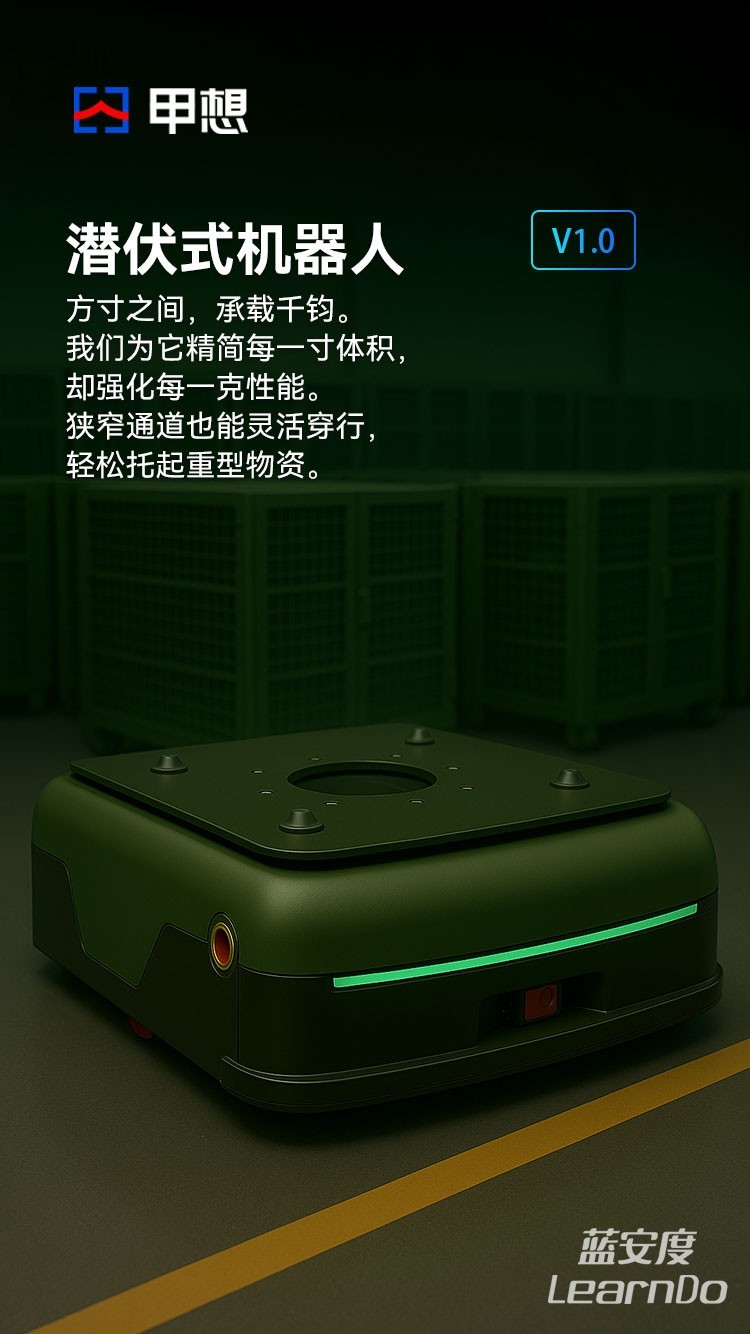 这款机器人采用低姿态潜伏结构设计,可精准对接军用物资笼、装备托盘,具备自主导航、路径规划、动态避障、集中调度等多项功能。整机使用军绿色隐身涂层,支持全天候任务运行,适配复杂仓储环境。