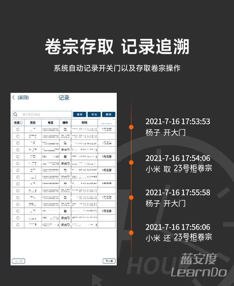 凌讯智能卷宗物资柜RFID文件管理柜让卷宗物证管理得心应手,凌讯智能卷宗柜支持支持对柜位人员进行权限设置,支持多类存取方式,全程监控卷宗的动态信息,系统支持对接私有化与云版双部署模式;支持二维码、RFID、NFC等多类标签技术对档案进行身份定义,该柜支持通过人脸识别、指纹识别、密码开锁等方式进行开门领取。