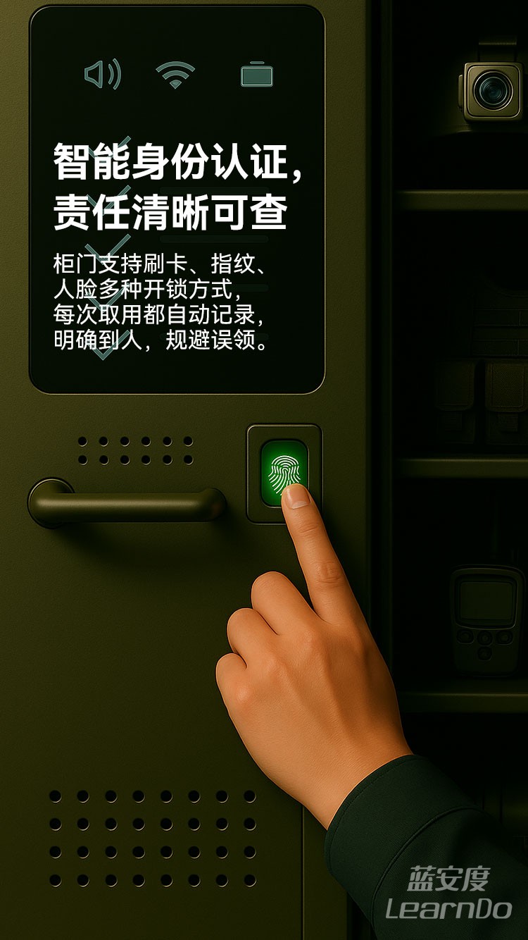 支持刷卡、人脸或指纹开锁,授权使用,记录开柜行为,确保“人装对应、责任可查”。