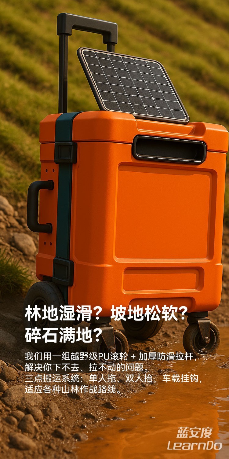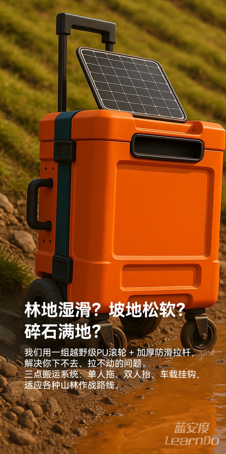 ✅ 野外机动适配结构:越野轮+拉杆系统,便于单兵拖行或小队携行