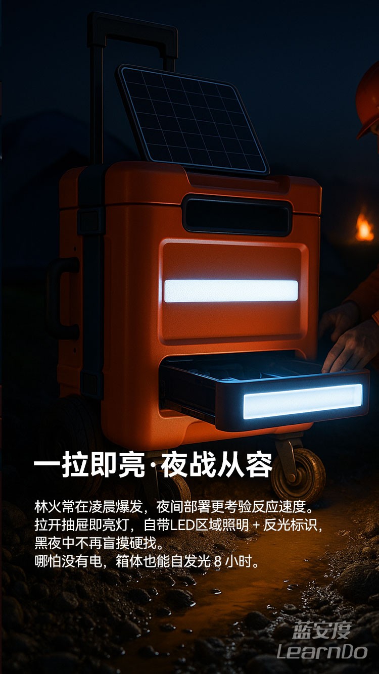 针对草原与森林火灾突发场景设计的一体化装备箱,集“携带快、部署快、响应快”于一体,支持消防队伍在偏远地形、复杂生态区域下进行高频次、多方向、多装备的快速响应出警。