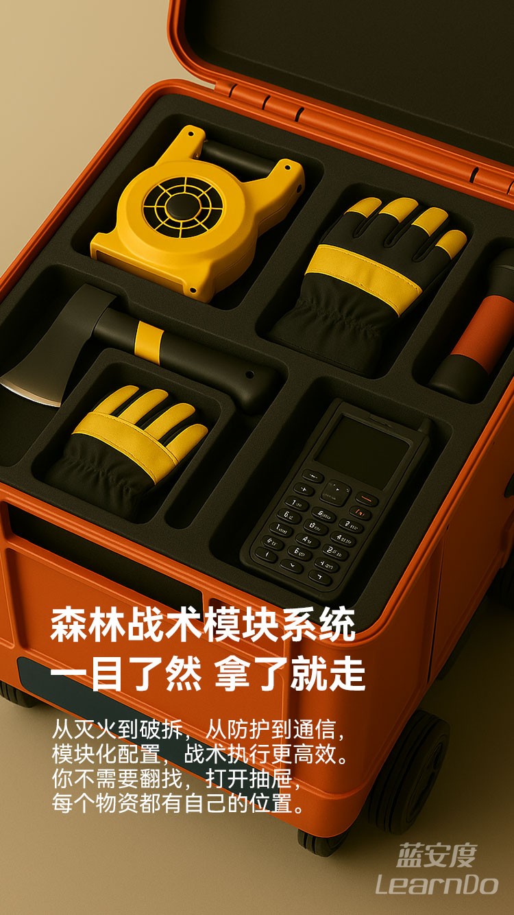 ✅ 模块化装备布局:灭火工具、防护用品、通信终端、电源模块一箱集成