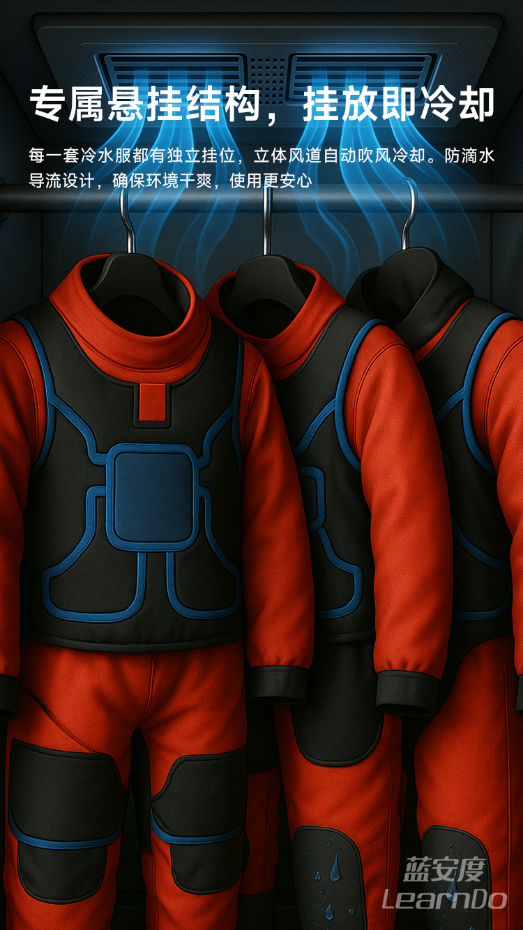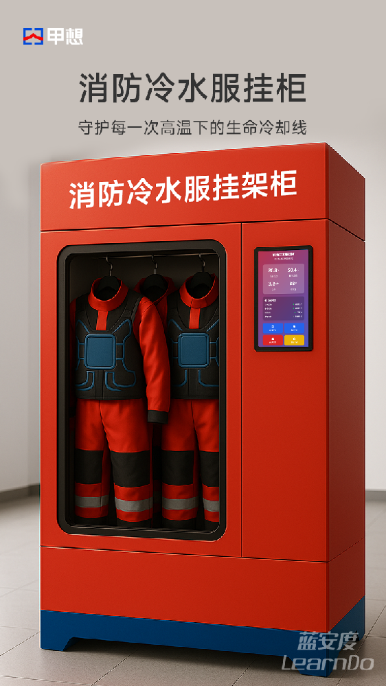 甲想消防冷水服挂柜,专为高温环境下的消防队员设计,采用模块化挂装设计,支持整套冷水服装备通风收纳。防水、防霉、快挂快取,适配站前备勤和任务后恢复流程,是冷水服的“专属空间”。