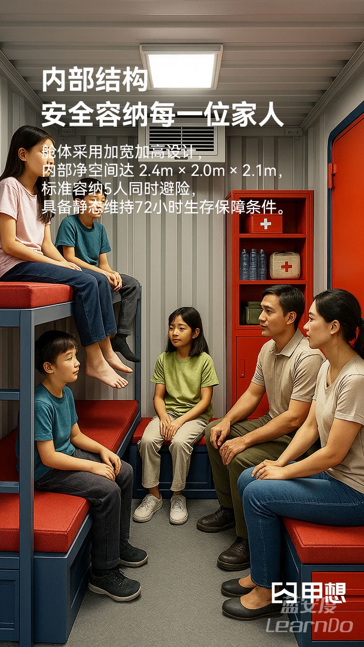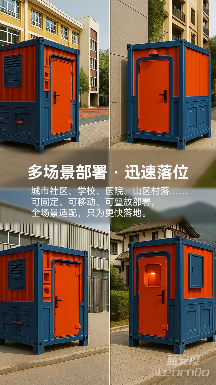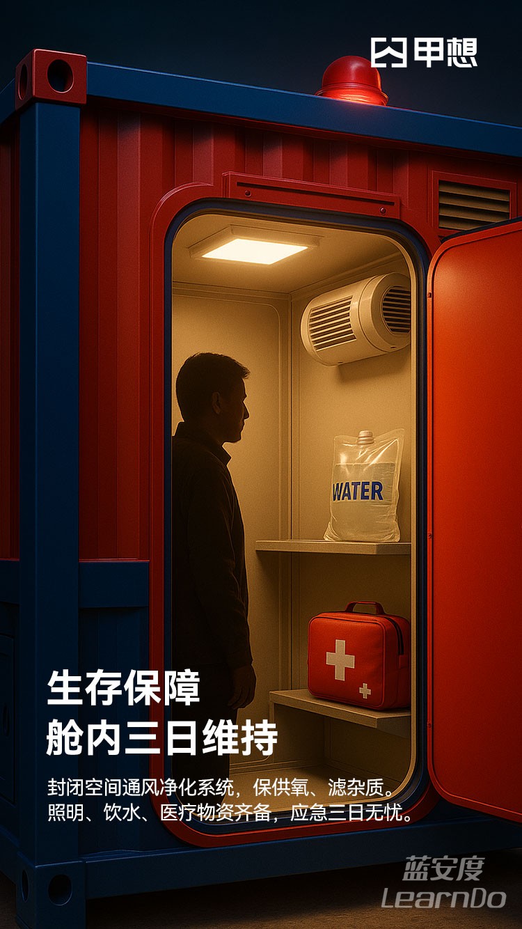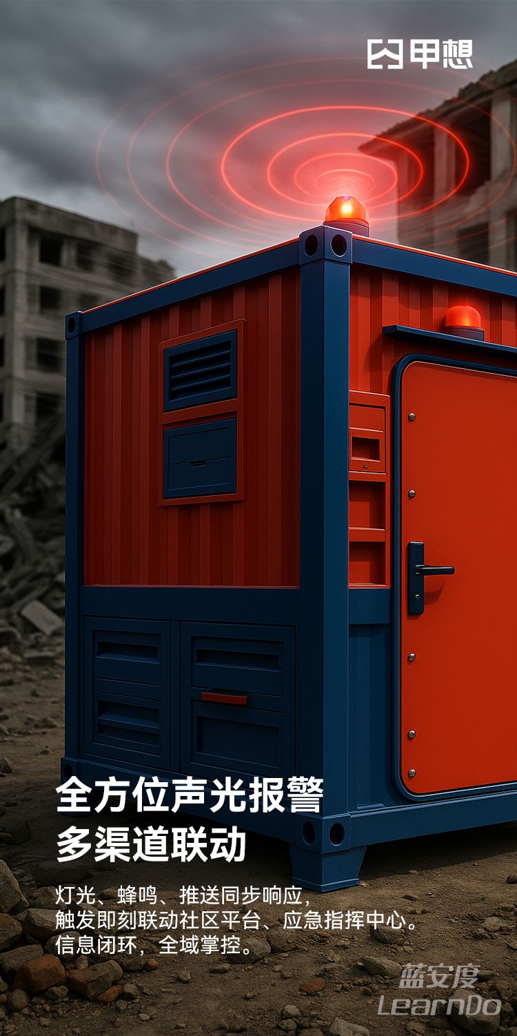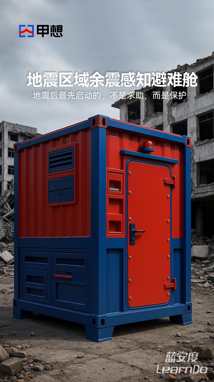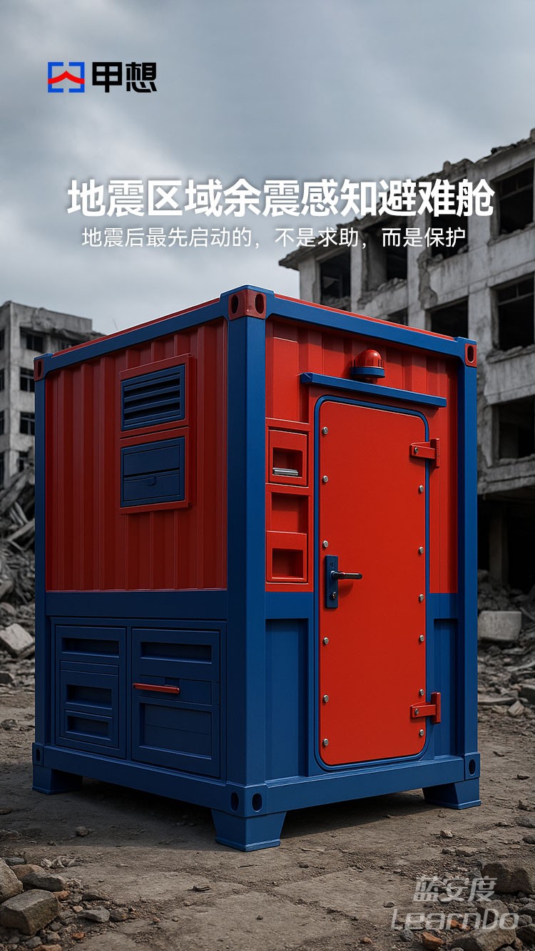 甲想地震避难舱是一款专为地震多发区域设计的智能应急装备,具备余震感知、自动报警、人员避险、智能监测、远程联动等多重功能。舱体采用集装箱级别钢结构打造,满足5人避难需求,内部配备基础生存物资与环境保障系统。广泛适用于城市社区、学校、医院、厂矿、山区等应急布防环境,是地震灾后自救与互救的核心装备之一。